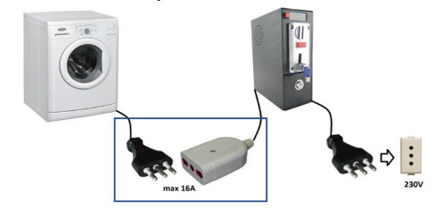 Πρακτική χρήση: ο επισκέπτης εισάγει τα κέρματα, η μονάδα κερμάτων τροφοδοτεί την πρίζα του πλυντηρίου ρούχων για τον προκαθορισμένο χρόνο. Μόλις παρέλθει ο χρόνος, η παροχή ρεύματος διακόπτεται και ο κύκλος δεν μπορεί να συνεχιστεί πέρα από τον αγορασμένο χρόνο, διασφαλίζοντας την υπεύθυνη χρήση του πλυντηρίου.
